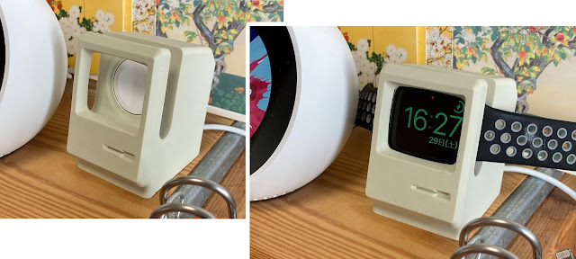 左から。言わずと知れた(?)初代Macintosh風のシリコン製Apple Watch充電スタンド elago W3 STAND Apple Watch です。僕はMacintosh Plus所有者(ただしプラチナ色時代)だったので、少し思い入れがあり導入しました。この組合せのアイデアに感心したものです。